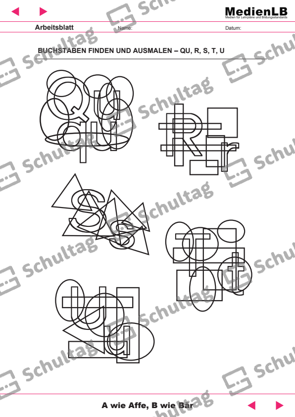 BUCHSTABEN FINDEN UND AUSMALEN – QU, R, S, T, U