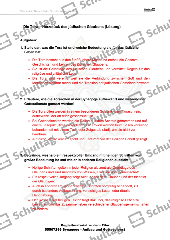 Synagoge - Aufbau und Gottedienst