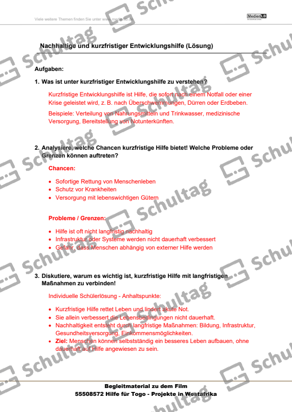 Nachhaltige und kurzfristiger Entwicklungshilfe