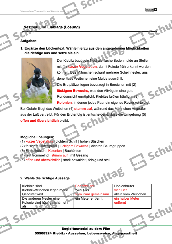 Ergänzende Arbeitsblätter zu diesem Produkt